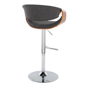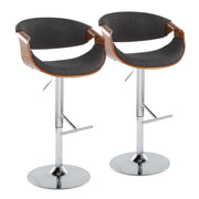 Curvo - Mid-Century Modern Adjustable Barstool With Swivel With Straight T Footrest (Set of 2) - Chrome / Walnut / Charcoal