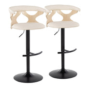Gardenia - Contemporary Adjustable Barstool With Swivel With Rounded T Footrest (Set of 2) - Natural / Black / Cream