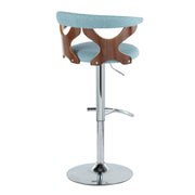 Gardenia - Mid-Century Modern Adjustable Barstool With Swivel With Rounded T Footrest (Set of 3) - Chrome / Walnut / Teal