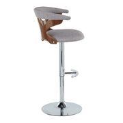 Gardenia - Mid-Century Modern Adjustable Barstool With Swivel With Rounded T Footrest (Set of 2) - Chrome / Walnut / Light Gray
