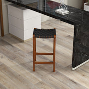 James - Mid-Century Modern Genuine Leather Counter Stool