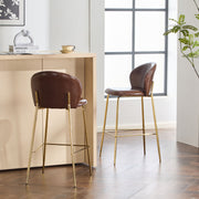 Kira - Indoor Upholstered Bar Stool With Metal Frame (Set of 2) - Dark Brown / Gold