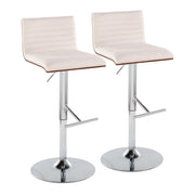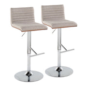 Mason - Contemporary Adjustable Barstool Swivel With Straight T Footrest (Set of 2) - Walnut / Cream