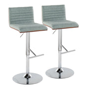 Mason - Contemporary Adjustable Barstool With Swivel With Straight T Footrest (Set of 2) - Chrome / Walnut / Green