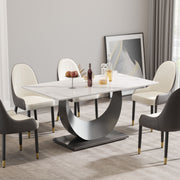 63" Modern Artificial Stone Crescent-Shaped Metal Legs, Can Accommodate 6-8 People - White / Black