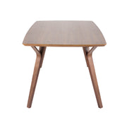 - Design & Style: The Folia Dining Table features a Mid-Century Modern design with a rectangular top, rounded edges, and splayed tapered legs, offering a clean and contemporary aesthetic.
