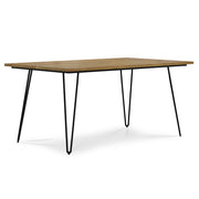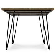- Table base is made of powder-coated iron metal with trendy hairpin-style legs that bring an open, airy feel to a dining space.