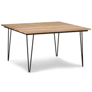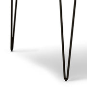 - Table base is made of powder-coated iron metal in Black with trendy hairpin-style legs that bring an open, airy feel to a dining space.
