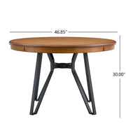 Mid Century Modern Round Dining Table With Metal Legs And Shelf - Brown