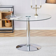 Modern Minimalist Circular Dining Table With Glass Top And Electroplated Metal Legs For Restaurants And Living Rooms - Silver / Transparent