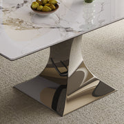 Modern Rectangular Dining Table With Stainless Steel Titanium Hourglass Base, Sintered Stone Top - Black White