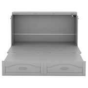 Queen Size Murphy Wall Bed With Drawer And A Set Of Sockets & USB Ports, Pulley Structure Design - Gray