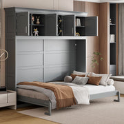 Queen Size Murphy Wall Bed With Top Cabinets & Wine Rack - Gray