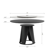 Modern Sintered Stone Dining Table With Round Turntable And Metal Pedestal - White