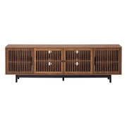 - Organized Entertainment Hub: Slatted cabinet doors offer concealed storage, combining visual texture with ample space to manage media and accessories.