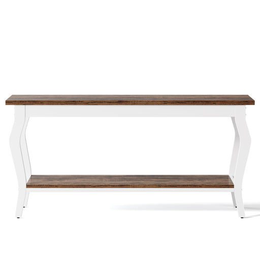 Console Table With Design, Extra Long Sofa Table For Living Entryway - Brown / White