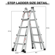 - Versatile and adaptable: The multi-position ladder effortlessly transforms into various configurations, including A-frame, extension, trestle-and-plank, 90-degree angle, and staircase.