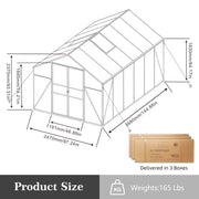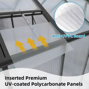 Gain Height Windproof Greenhouse 8 X 14 Ft Polycarbonate With Raised Base And Anchor Alloy Frame, All Season Outdoor Garden Shelter - Black