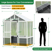 Greenhouse, Wooden Greenhouse Polycarbonate Garden Shed For Plants, Walk-In Outdoor Plant Gardening Greenhouse For Patio Backyard Lawn, Grow House With Front Entry Door - White / Gray