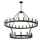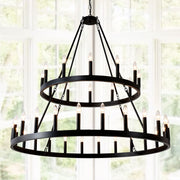2 Tiers Wagon Wheel Chandelier Wooden Farmhouse 36 Light (24 / 12) Or (12 / 24) Metal Chandeliers 2 Story Light Fixtures Industrial For High Ceiling Living Dining Room Foyer, Adjustable Height - Black