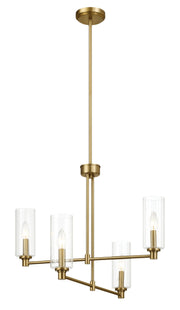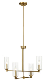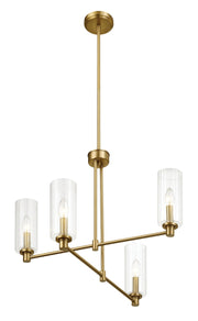 Enigma - 4 Lights Chandelier With Clear Ribbed Satin - Antique Brass / Clear / Gold