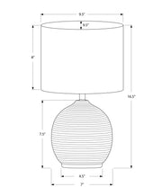 - Stylish Design: Contemporary 16" table lamp with a beehive design textured black resin base and an ivory fabric drum shade.
