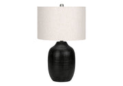 - Elegant Design: Stylish 26" contemporary table lamp with a ginger jar shape, finished in textured glazed black ceramic, and topped with an ivory linen drum shade.