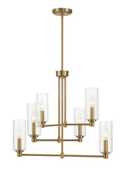 - Elegant Design: The Timeless Six Lights Chandelier features a vintage-inspired design with clear ribbed glass and a satin brass finish, adding a touch of elegance and charm to any room.