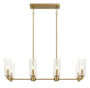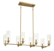 Willow - 8 Lights Island With Clear Ribbed Pendant Lamp Satin - Antique Brass / Clear / Gold