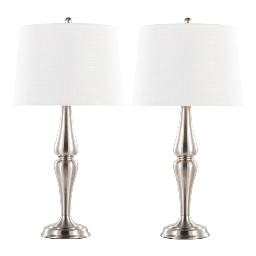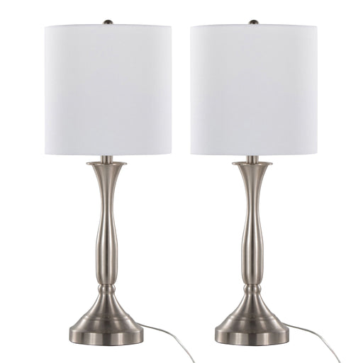 View full detailsStylish Design: The Sawyer 30" Contemporary Metal Table Lamp set features a modern and sleek hourglass-shaped body with a brushed nickel fini...