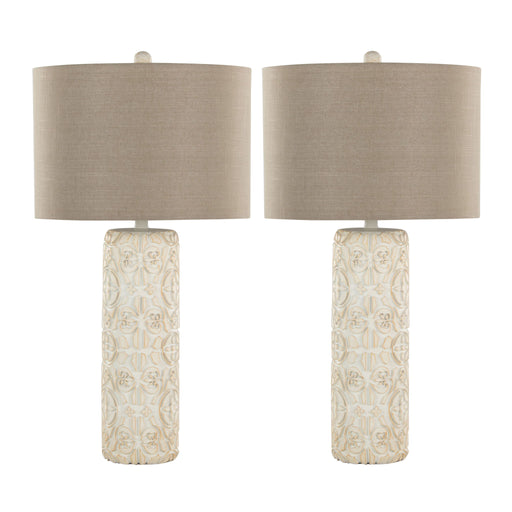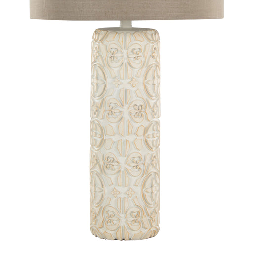 View full detailsElegant Design: The Charlotte Table Lamp boasts a stunning polyresin base with an intricately carved pattern and a matching finial, providing...