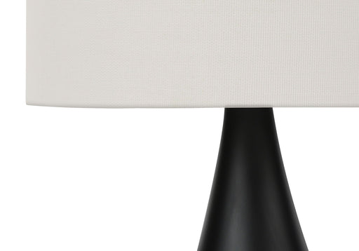 View full detailsModern Design: This 19" table lamp features a sleek black metal design with a slender arm and an ivory fabric drum shade, enhancing any office,...