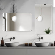 - Aluminum Frame: The mirror is encased in a sturdy aluminum frame that offers a sleek and modern aesthetic while providing superior durability and stability.