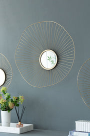 Wall Mirror Abstract Designed Wall Mirrors WithFrame For Home & Office, Top Of Sideboard (Set of 3) - Gold