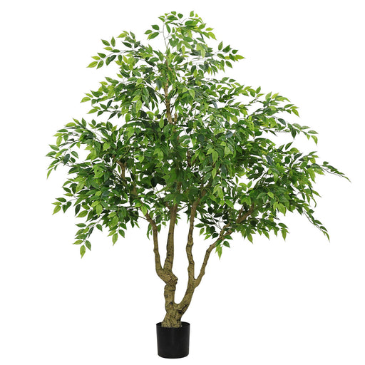 Standing approximately 7 feet tall, with lush foliage, it can add vibrant greenery to any space. Using natural wood trunks and lifelike silk leave...