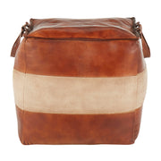 - Quality Materials: Featuring stylish leather upholstery complemented by a canvas accent, this pouf is crafted for durability and aesthetic appeal. The recycled cotton fill ensures comfort and eco-friendliness.