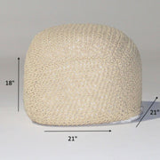 Semi Rounded Pouf Cable Knitted Handmade Seating And Footrest - Beige