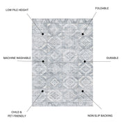 Toucan - 5' X 7' Washable Non - Slip Area Rug - Silver