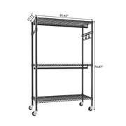 Heavy Duty Rolling Clothes Rack With 3 Tier Shelves, 2 Rails & Side Hooks, Adjustable Freestanding Organizer Metal - Black