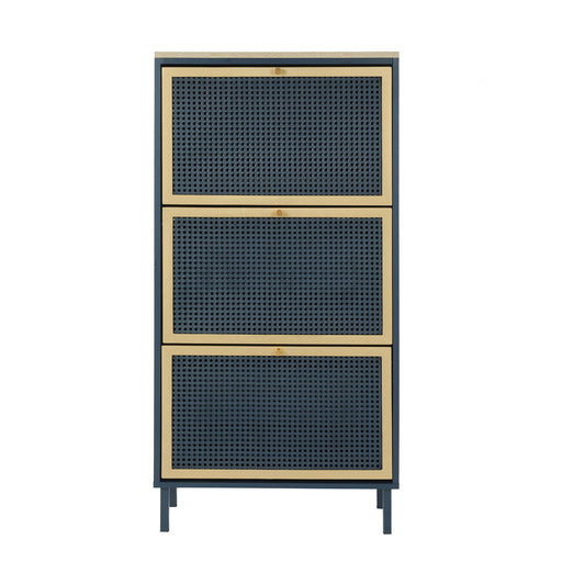 Modern Rattan 3 Door Shoe Rack Cabinet For Entryway