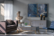 Framed Art Panels, Unique Marbled Design (Set of 2) - Blue