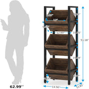 3 Tier Basket Stand With Angled Baskets, Vertical Storage Tower For Kitchen - Black