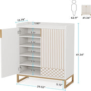 5 Tier Shoe Cabinet With Doors, Compact Storage Organizer - Walnut / Gold