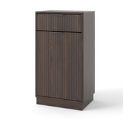 Tilt Out Trash Can Cabinet With Wave Textured Drawer & Pull Out Bin - Walnut