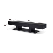 - Modern Design: This sleek, black rectangular TV stand features a minimalist design with a sturdy wooden top and a double pedestal base, offering a balanced and contemporary silhouette.