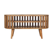 - Artisan Furniture Solid Wood Mini Ariella Media Unit - Update your home with our Ariella Media Unit boasting a contemporary Japanese design allowing light to shine through and is constructed from 100% solid mango wood in an oak-ish finish. This is a versatile piece and is perfect for use in the living room.