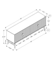 - Contemporary Design: This 60-inch TV stand features a modern and stylish design with a and laminate finish, complemented by white ribbed doors and a sturdy black metal frame. The black metal knobs add an elegant touch to its overall appearance.