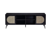 - Stylish Design: The Colson Black Finish TV Stand features a sleek design with a combination of wood and metal, highlighted by a rattan insert, adding a contemporary touch to any living room.