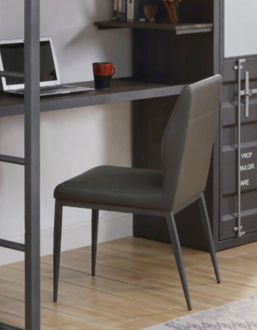 View full detailsDesign and Materials: This chair features a contemporary design with a sleek gunmetal finish. It is crafted from durable metal and upholstere...