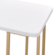 - Design and Structure: The Estie White & Gold Finish Writing Desk features a KD, rectangular design with an open base supported by sturdy metal square tubes, offering a sleek and modern appearance.